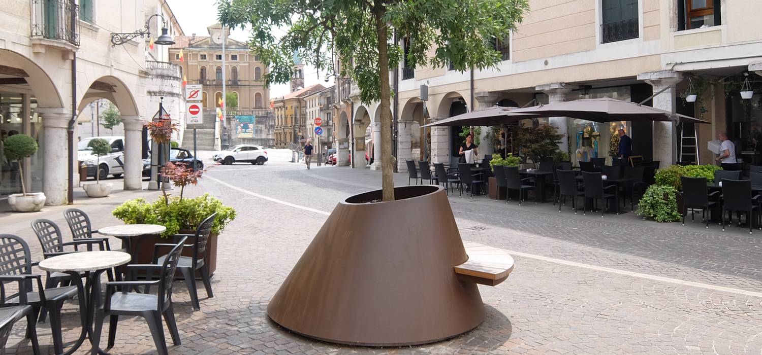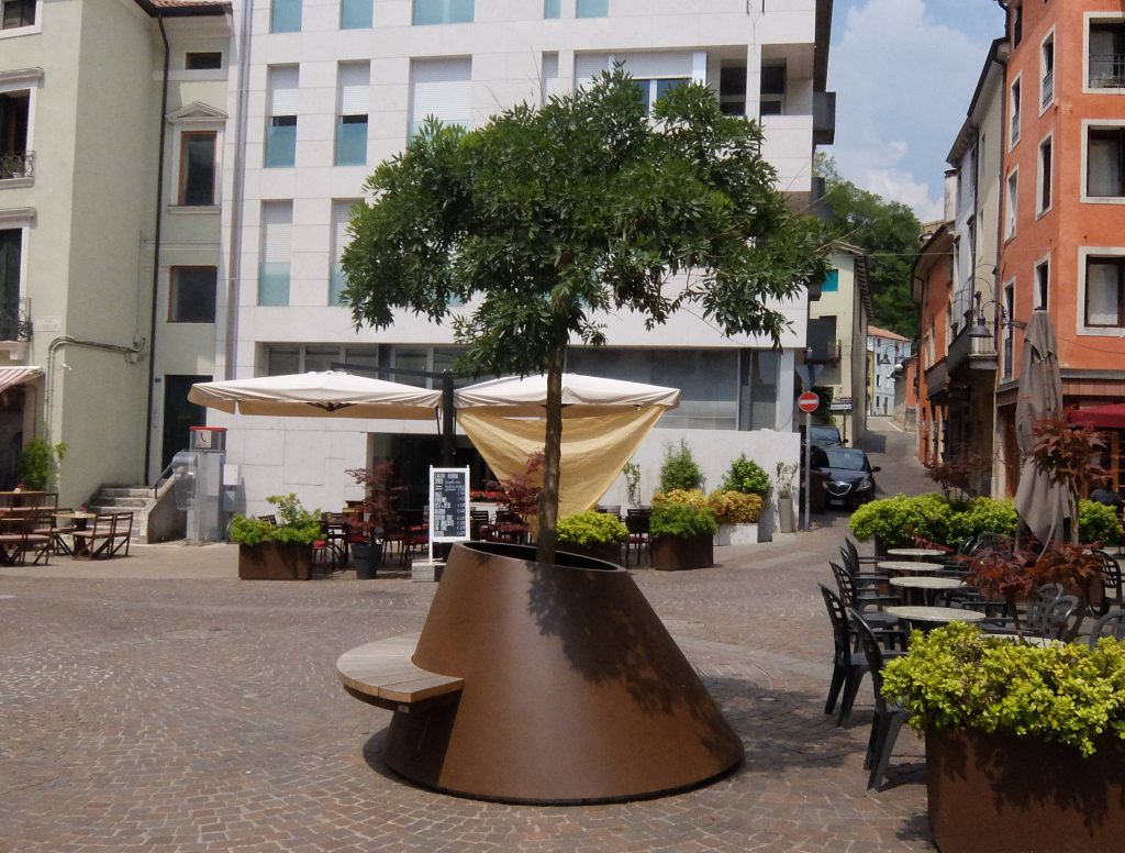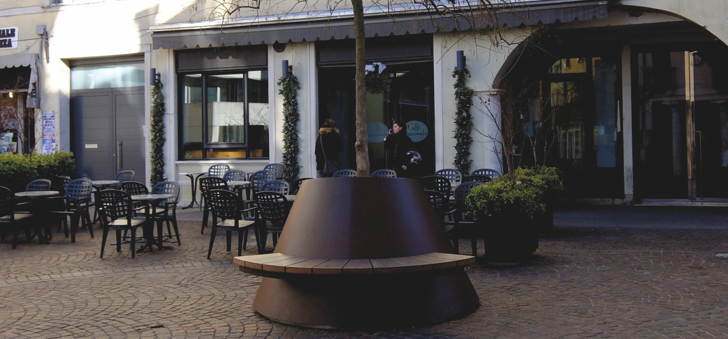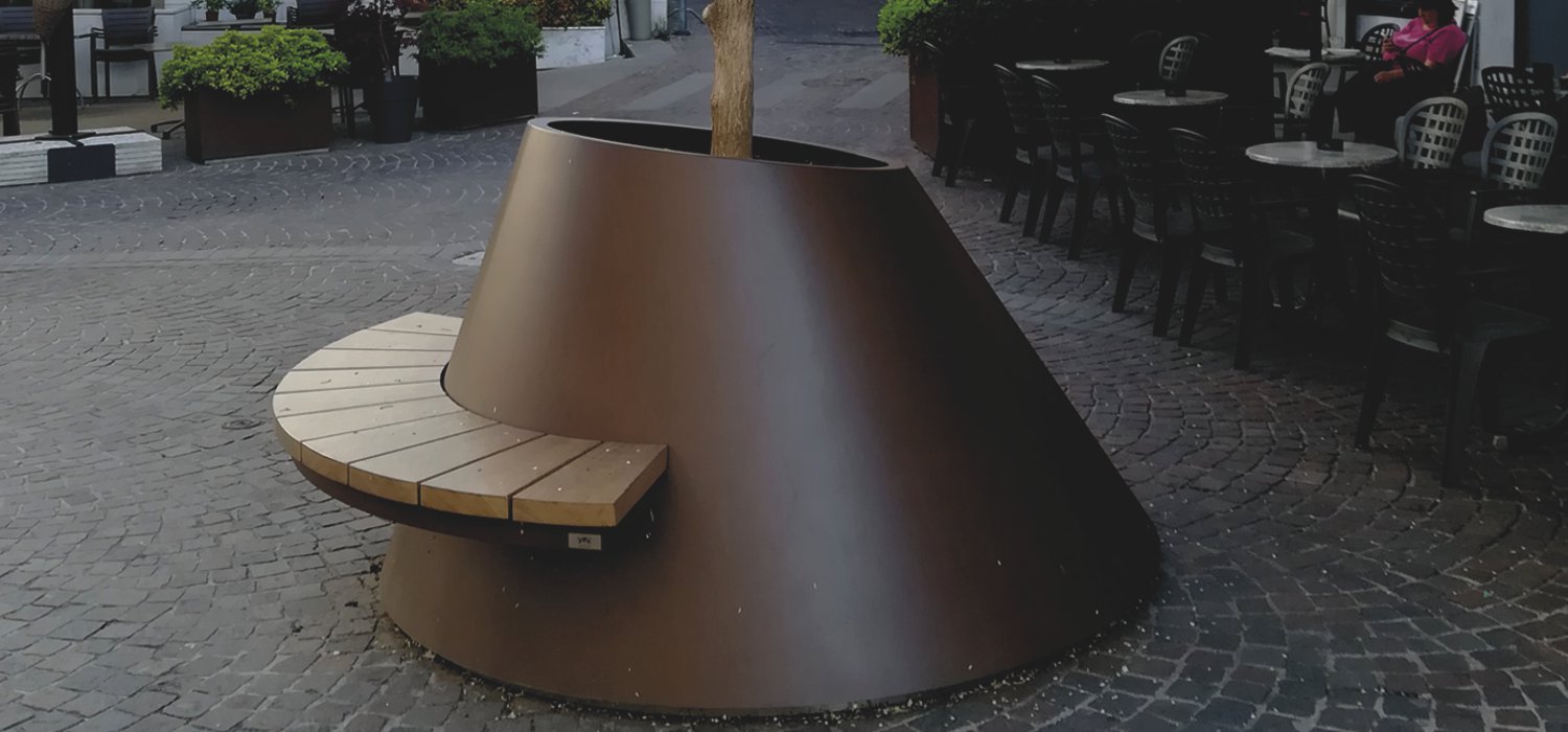 E’ accoppiata ad una panchina circolare e permette di arredare a verde gli spazi urbani sprovvisti di terreno libero.