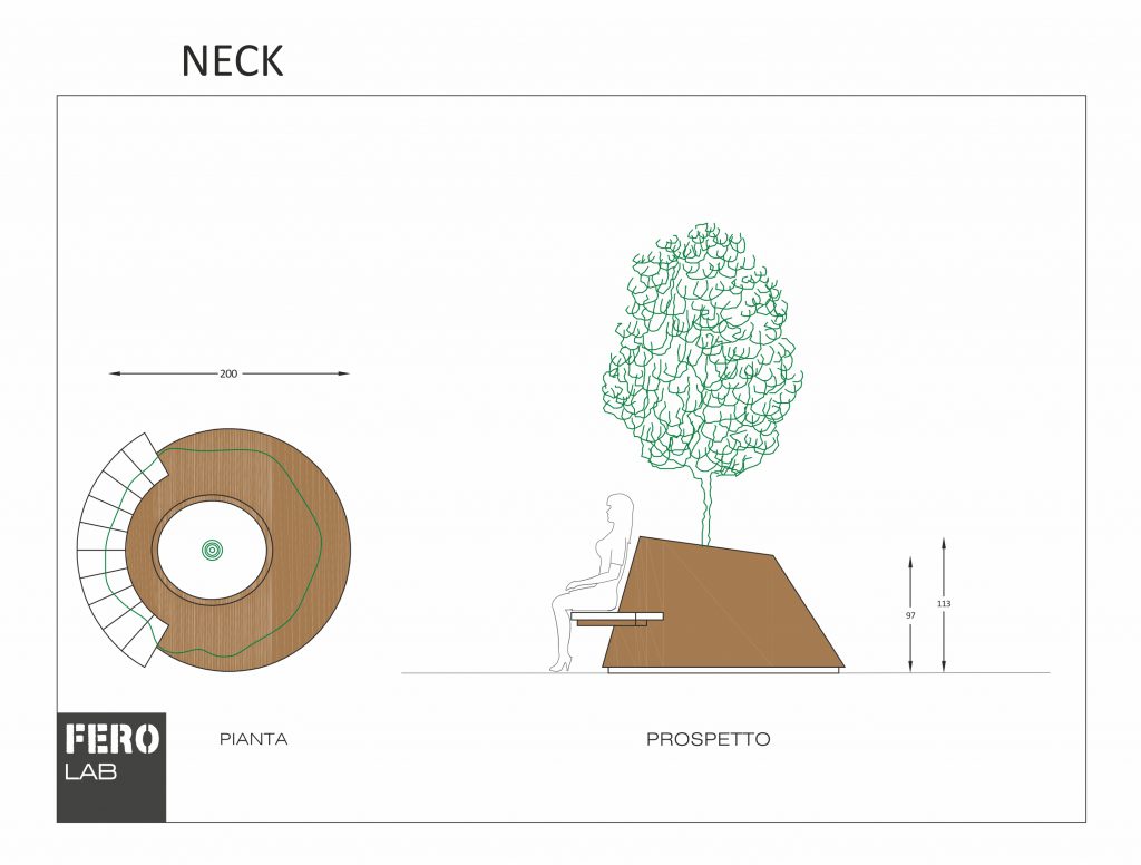 La panchina è proposta in legno duro tipo Iroko per resistere minimo 15 anni alla marcescenza.