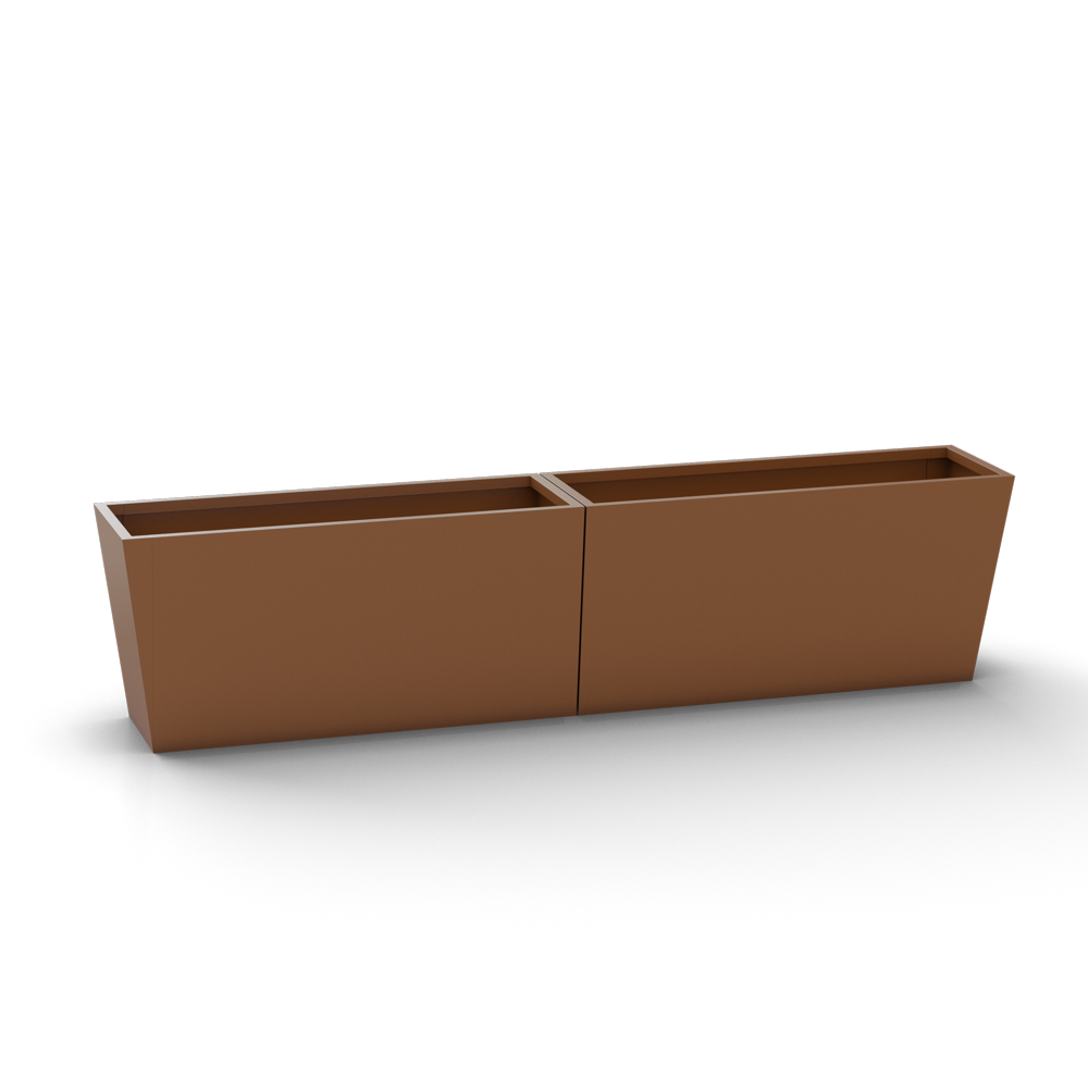 Sistema di fioriere caratterizzate da un’angolatura sporgente che crea un effetto dinamico. Sono nella versione con angolo a destra, sinistro oppure centrale con lato lungo sporgente per tutta la lunghezza.