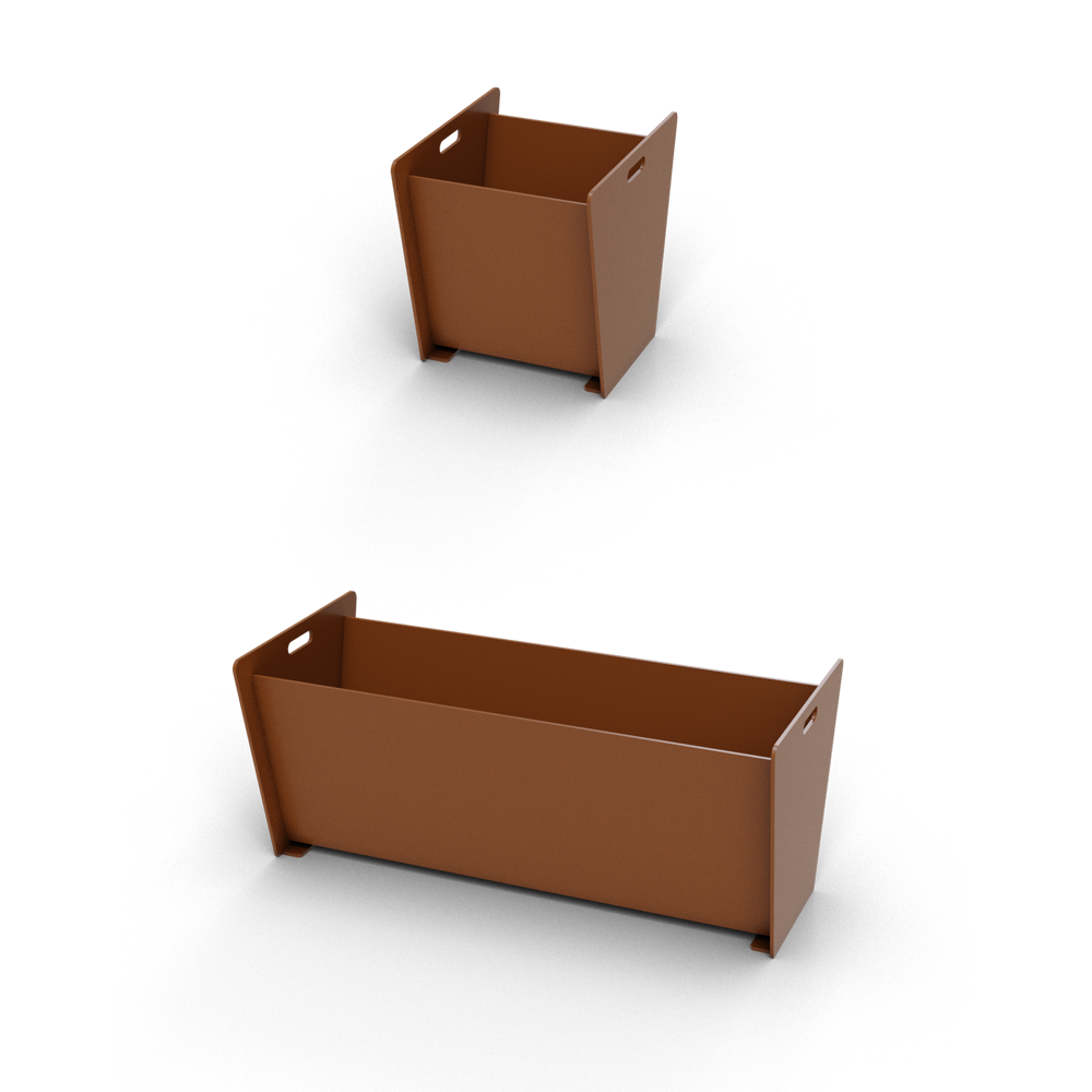 Collezione di fioriere in lamiera d’acciaio dalla forma evocativa dei classici vasi in terracotta. Disponibili anche in diverse misure.