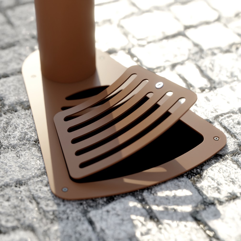 La griglia di scolo è apribile tramite una semplice chiave quadra, che consente di effettuare agevolmente le operazioni di pulizia della vasca di raccolta acqua.