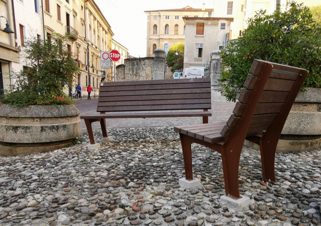 Panchina d’arredo che coniuga la tradizione delle panchine classiche con un’estetica e sistema costruttivo contemporaneo.