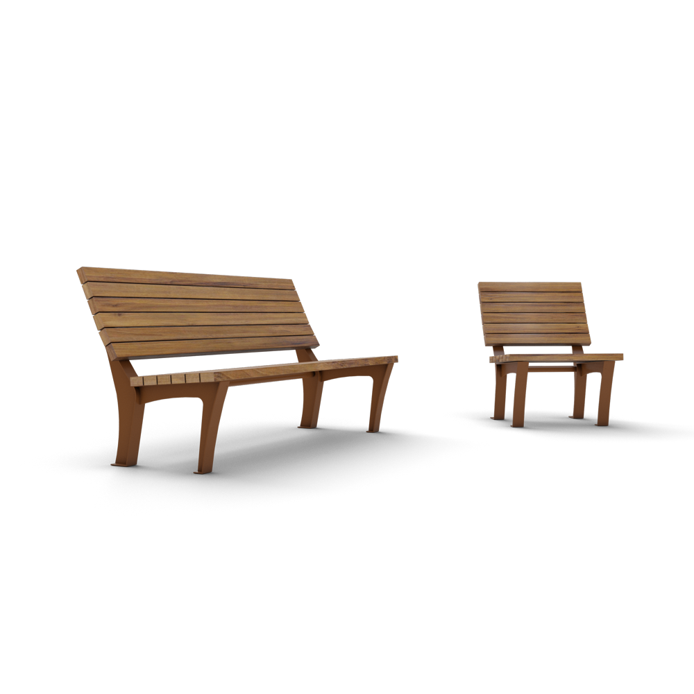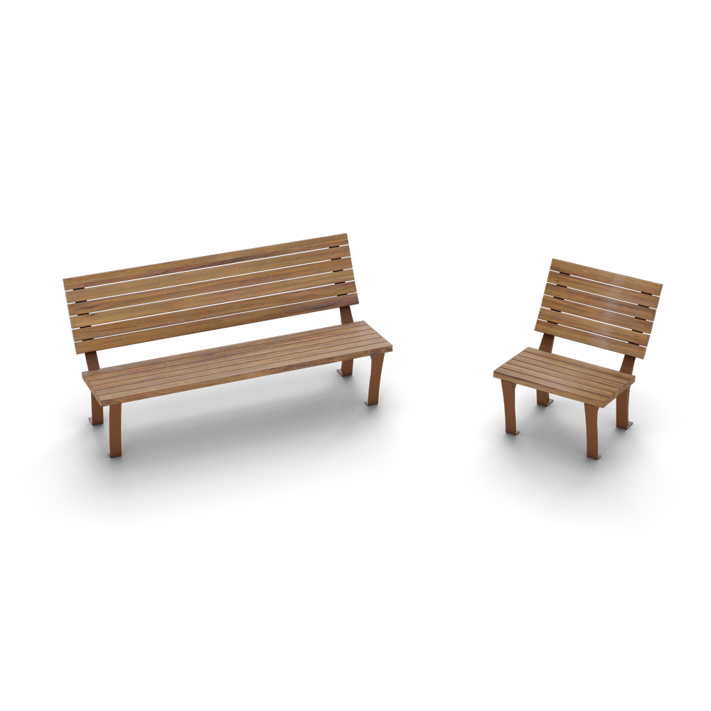 Ha due supporti tagliati al laser sui quali si fissano le doghe in legno esotico, può essere fornita a seduta singola o nei tre posti classici.
